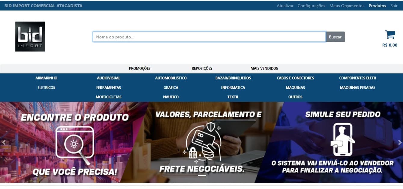 Além disso, atua nos mais diversos segmentos do mercado nacional de produtos. A BID Import tornou-se expert em identificar nos Leilões da Receita Federal quais as melhores oportunidades ao comprar - e vender - produtos leiloados pelo órgão federal. Desta forma, a BID Import tem uma enorme variedade de produtos disponíveis para venda, tanto em seu estoque físico, como em próximos leilões.